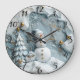 Um encantador relógio de Natal adornado com um boneco de neve e decorações congeladas. O relógio apresenta tons azuis macios, flocos de neve e ornamentos espumantes, criando uma atmosfera festiva que captura alegria de feriado e encanto de inverno.