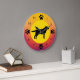 Proprietários de cães e amantes de cães apreciarão este design colorido com uma silhueta Labrador Retriever e impressões de pata que representam os números na face do relógio, com um fundo de cores do pôr do sol de laranjas, amarelos e vermelhos.
