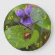 Relógio Grande Ladybug em Flores de Violeta Doce