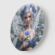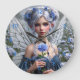 Uma bela fada de cabelos azuis com asas prateadas vestindo um vestido azul bonito e joias safiras segura uma solteiro-russa enquanto está em um campo de mestre. O texto pode ser facilmente alterado ou eliminado se pretender que a imagem fique sem texto.