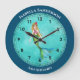 Linda ilustração da sereia com cabelo comprido ondulante e tons verdes multicoloridos escalas e tonalidades. Presente perfeito para uma garota que ama as sereias! O design tem um círculo azul-turquesa escuro no lado externo e textos que podem ser personalizados no lado superior e inferior. Vai fazer um encantador suplemento à sua decoração ou um presente para uma nova casa.