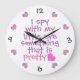 Relógio Grande Lindo *Eu Espio* Rosa e Roxo