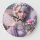 Uma bela fada rosa pálida, penteada, com asas rosa pálidas vestindo um vestido de lavanda pálido e um colar de pérolas segura uma rosa solteiro enquanto está em um campo de rosas. O texto pode ser facilmente alterado ou eliminado se pretender que a imagem fique sem texto.