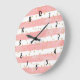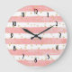 Relógio Grande Listras de Lâmpada Rosa com Confetti Dourado Falso