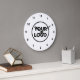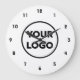 Substitua o logotipo de exemplo da empresa pelo seu, na barra lateral, para criar um na moda mínimo de relógio de parede para a sua empresa com um simples fundo branco. Seu logotipo pode ser em cores ou preto e branco. Números negros negros negros à volta da borda facilitam a contagem do tempo. Clique para personalizar ainda mais se precisar ajustar o tamanho do logotipo com os botões de escala. Veja mais itens aos quais você pode adicionar seu logotipo na coleção Rocklawn Arts.