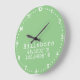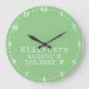 Relógio de parede com Hillsboro Oregon longitude e coordenadas de latitude em fonte de máquina de escrever em fundo verde claro.