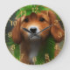 Foto endossada com folhas de samambaia é um filhote de labrador pequeno e branco