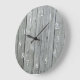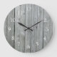 Um relógio de parede rústico com um impressão de painel de madeira de cinza para uma na moda procurar sua cozinha estilo country.