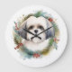 Relógio Grande Malti Tzu Christmas Wreath Festivo Pup