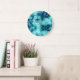Azul e verde se combinam para fazer um rico design marmoreado neste lindo relógio de parede