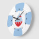 Uma adição fofinha a qualquer quarto com tema de navegação, este relógio de parede fofo tem uma borda externa projetada como um anel de vida ou um preservador de vida em azul e branco com um veleiro vermelho e branco na face. Copyrights gráficos © Coca Studios