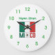 Celebrate heritage with this large round wall clock featuring the Mexico flag, green Arabic numerals, and your custom name above in green. A bold, easy‑to‑read design perfect for kitchens, offices, and family spaces. Great for reunions, gifts, and showing cultural pride.