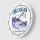 Display your Michigan state pride, with this charming wall clock. It features the Great Lakes State heritage, showcasing a scenic lighthouse waves seagulls, design. An established 1837 gift, celebrating maritime history. This Michigan wall clock, adds timeless nautical charm to any home. Perfect for any one.