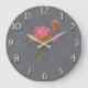 Relógio Grande Mod Colorful Summer Flamingo Chic Modern Cinza