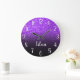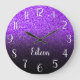 Relógio Grande Mole Negra Glitter Roxo Personalizada