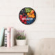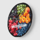 Monogram kitchen wall clocks with image of a variety of fruits and berries and monogram emblem you can personalize with any ladies name officially naming it her kitchen.