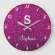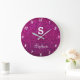 Relógio Grande Monogramas Brilhantes Rosa Roxo Presente Moderno F