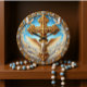 Este relógio de ornamentado apresenta uma cruz radiante de ouro, simbolizando a Santa Trindade, colocada contra um céu sereno com nuvens. Duas pombas, representando a paz, flanqueam a cruz. A borda do relógio é intricadamente decorada, acrescentando à sua reverente e beleza artística. Perfeito para adicionar um toque de elegância espiritual a qualquer espaço.