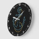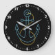Design de relógio de parede moderno e divertido apresenta um fundo preto com contorno de âncora de barco neon e face branca do relógio numérico.