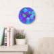 Relógio Grande Névoa violeta - luz ciana e roxa abstrata