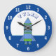 Foguete Nave Desenho Espaço Nome Grande Relógio. Um foguete em cores azul e verde. Personalize o relógio com o nome. É uma bela ideia de presente para um aniversário para um menino ou decoração para o quarto das crianças. Um presente único para filho, neto ou sobrinho.