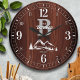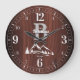 Diversão, nome personalizado da família e design monograma. Faz o presente perfeito para um casamento, casamento ou qualquer ocasião! Picos de montanha de neve invertida e pinheiros em um painel de madeira de carapaça falso e profundo.