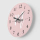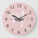 Acompanhe o estilo do tempo com o Relógio Grande do Nome de Grande Leitura de Script Moderno Rosa Esbranquiçado. Este elegante cronograma apresenta um fundo cor-de-rosa pincelado suave e um monograma personalizado em uma fonte moderna, fazer-o como uma adição chic a qualquer sala. Os números grandes, fáceis de ler e as mãos elegantes garantem que você sempre pode ver o tempo de uma só vez. Perfeito para o dormitório, escritório ou quarto de uma garota, este relógio combina funcionalidade com um toque de talento personalizado.