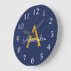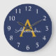 Relógio de Nome do Monograma Simples de Script Azul e Dourado. Isto faz o doce e perfeito aniversário de 16 anos, casamento, chá de panela, aniversário, chá de fraldas ou festa de solteira presente para alguém que ama luxo de luxo e estilos quíticos.