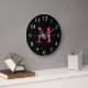 Relógio Grande Nome do Monograma da Rapariga Preta-Rosa Quente