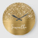 Personalize o script de estilo manuscrito moderno para criar seu próprio relógio redondo. Adicione um monograma inicial atrás do nome para criar sua própria combinação inicial de nome. Grelha de gema falsa dourada e ouro metal falso filme digital de folha de papel que impressão como uma foto em seu presente. Há outros relógios de parede brilhantes nesta loja.