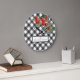 Buffalo Check Xadrez Black White Family Name Custom Large Clock é a adição perfeita à sua decoração rustica da cozinha. Apresentando um padrão de verificação de bufalos preto e branco popular com sotaques de morango vermelho, junto com o nome de sua família em uma fonte clássica, você vai adorar esse bonito relógio personalizado de parede. Personalize clicando em "Personalizar"!