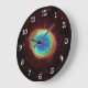 Adicione números brancos ao relógio da parede de fotos. O exemplo é a Nebulosa do Anel. O brilhante centro azul aqua ou olho é adorável. Adicione sua própria mensagem de texto personalizada.