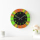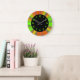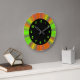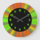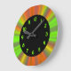 Números de Chartreuse em um círculo preto. Você pode substituir a imagem digital de arte fractal por uma foto e criar seu próprio relógio de presentes na parede. A imagem de exemplo que forma a borda circular é a arte fractal com listras laranja, amarelas e verdes limões.