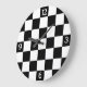 Verificado o relógio retrorreflector geométrico preto branco com números. O presente do Home Decor Wall Clocks para qualquer um. Presente de padrão geométrico preto e branco quadrados marcados para qualquer um. Legal design de padrão quadrado geométrico verificado retroralmente. Verificador azulejo preto e branco moderno.