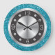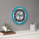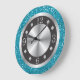 Relógio Grande Números Pretos E Prateados Turquesa Azul