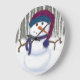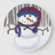 Puffy, o boneco de neve está preparado para a primeira queda de neve da temporada de inverno. Ele está escondido em seu chapéu colorido e fofo e cachecol.