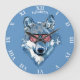 Relógio Grande O lobo azul psicadélico com óculos de sol