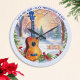 Essa música atraente temia relógio de parede fotografa um ukulele com neve e árvores verdes do inverno. O rosto do relógio festivo tem uma borda roxa clara ao redor da borda, que pode ser personalizada com seu próprio texto. Perfeito para jogadores ukulele e amantes da música, este relógio é funcional e decorativo, fazer presente de Natal ideal para a casa.