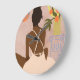 "Olhando para o Abismo" captura uma mulher diante de um vasto vazio negro, contemplando os mistérios além. O sol laranja e o pote floral próximo simbolizam a esperança e a resiliência em meio à incerteza.