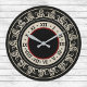 Este design de aparência antiga apresenta um trabalho de rolagem preto com aparência medieval com os números romanos. O design de aparência de vintage é predominantemente preto e nu, com um fino anel de burgundy ao redor do centro da face do relógio.