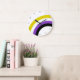 As cores não binárias de amarelo, branco, roxo e preto criam o arco-íris legal neste divertido relógio personalizado da parede. Eles são presentes para um amigo não-binário na comunidade do gênero.