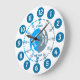 Cor gráfica do pulso de disparo de parede dos miúdos brancos, azuis e cinzentos codificada para ajudar a ajudar a sua criança a ler um pulso de disparo. Este auxílio de ensino inclui os minutos e as horas e a cor codificados após e ao jogo de criança do fazer de dizer o tempo. Projetado exclusivamente por Sarah Trett. Uma grande adição ao quarto de uma criança que está aprendendo ler uma face do relógio.