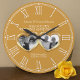 Personalize o relógio personalizado do aniversário de casamento do ouro com suas fotos de casais, então e agora, ano de casamento e nomes ou relação com você. O exemplo diz Jasmina e Tommy Robinson 50º aniversário de casamento do Ouro e seu casamento e data atual. Outros itens correspondentes estão disponíveis. Arte e design de efeito de coração de metal de ouro duplo por Sarah Trett para www.mylittleeden.com