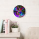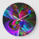Relógio Grande Padrão Azul Vermelho Abstrato Floral Moderno #12