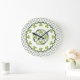 Shamrocks, ou três folhetos, decoram este relógio de parede junto com um nó Celta inspirando um padrão gráfico em tons de verde. O shamrock é um símbolo da Irlanda, assim como das Ruas.