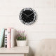 Relógio Grande Padrão de Flores Barrocas Pretas e Brancas