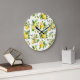 Relógio Grande Padrão de limão, flores de limão, folhas, citrinos