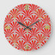 Relógio Grande Padrão do ventilador Art Deco - vermelho sobre a c