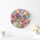 Relógio Grande Padrão floral tropical, cores vibrantes.