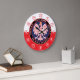 Este design redondo colorido apresenta a águia polonesa com uma coroa de ouro, o casaco de braços de Polônia num fundo azul colorido do Texas Flag, cercado pelas palavras Texano polonês e Panna Maria.